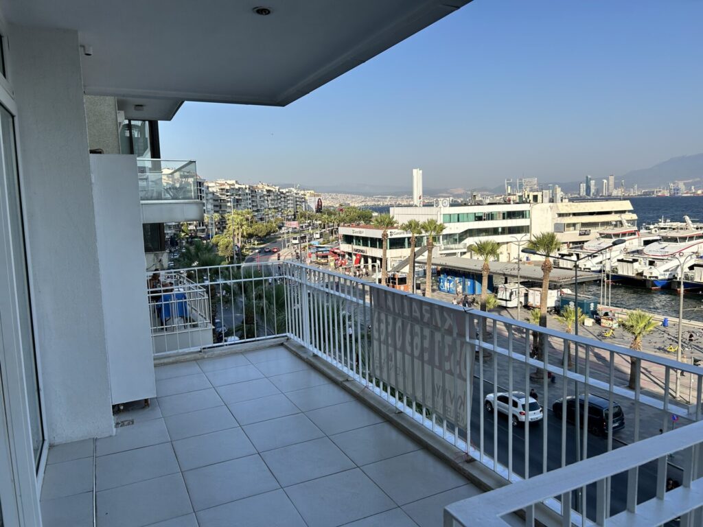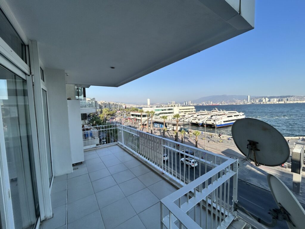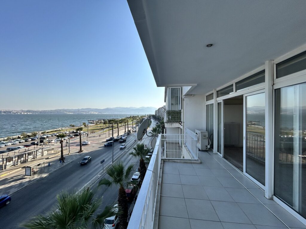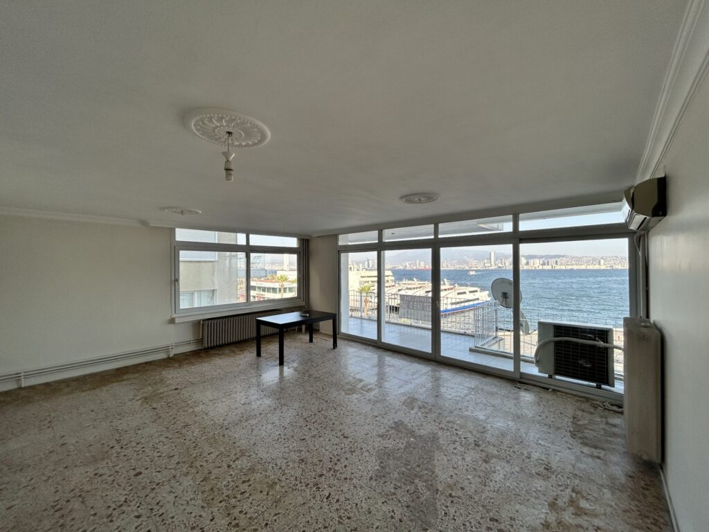 Karşıyaka vapur iskelesi çaprazı, tramvay durağı karşısı, çarşı girişine yakın, harika bir deniz ve şehir manzarasına sahip yalı dairesi. Asansörlü, 8 katlı binanın 5. katında, karanlık odası olmayan, köşe 130 m² kullanım alanına sahip bu 3+1 daire, doğu ve kuzey cepheleriyle gün boyu doğal ışık almakta ve doğalgaz kombi ile ısınmaktadır. Dairenin ön cephesinde geniş bir balkon , girişte çelik kapı , görüntülü diyafon, banyoda duşakabin , odalarda gömme dolap , salonda ısıcamlı pvc dış doğrama ve klima, karotaş zemin, odaların zemini ahşap parke, ahşap dış doğramalar mevcut olup, dairenin komple boya, badanası yeni yapılmıştır.